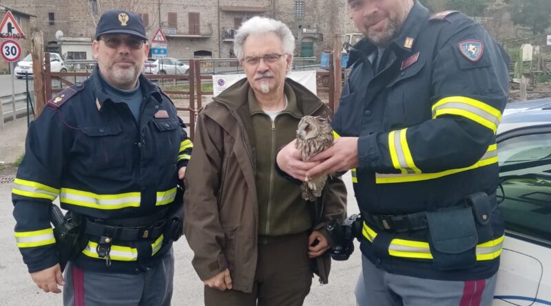 Gufo stordito sulla Aurelia a Montalto di Castro, salvato dalla polizia stradale