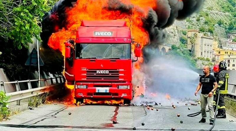 La strada è rimasta chiusa in entrambi i sensi di marcia per permettere le operazioni di spegnimento e messa in sicurezza.