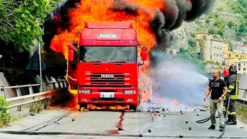La strada è rimasta chiusa in entrambi i sensi di marcia per permettere le operazioni di spegnimento e messa in sicurezza.