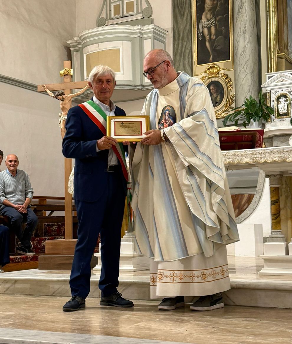 Nel corso della celebrazione di sabato sera nella chiesa di Santa Maria Assunta in Cielo, il sindaco Mario Fanelli, a nome di tutta l’amministrazione comunale e della cittadinanza, ha consegnato a don Fedoro una targa commemorativa per ringraziarlo di questa lunga e significativa avventura insieme.