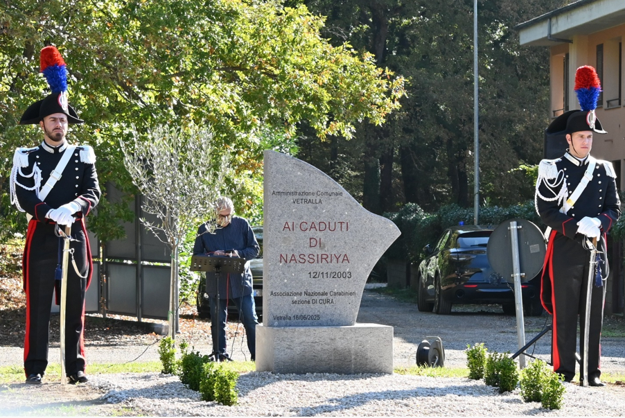 Nel corso di una solenne cerimonia organizzata dal Comune di Vetralla e dalla Sezione dell’Associazione Nazionale Carabinieri di Cura di Vetralla, svoltasi il 12 novembre 2025 in occasione della 17^ “Giornata del ricordo dei Caduti militari e civili nelle missioni internazionali per la pace”, in largo Caduti di Nassiriya è stata inaugurata una stele commemorativa dedicata alle “Vittime di Nassiriya“.
