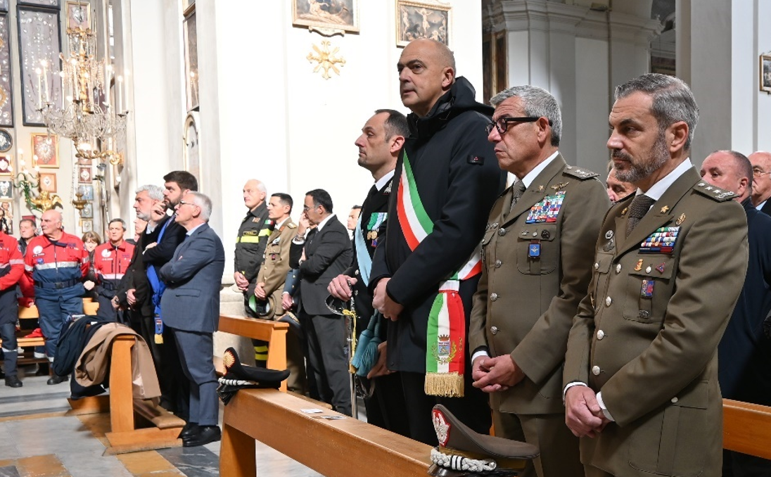 Particolarmente nutrita la presenza di Carabinieri in servizio e in congedo dell’Associazione Nazionale Carabinieri, con i gonfaloni e i labari delle associazioni combattentistiche e d’arma. La celebrazione religiosa è stata accompagnata dai canti del coro Schola Cantorum S. Maria della Quercia.