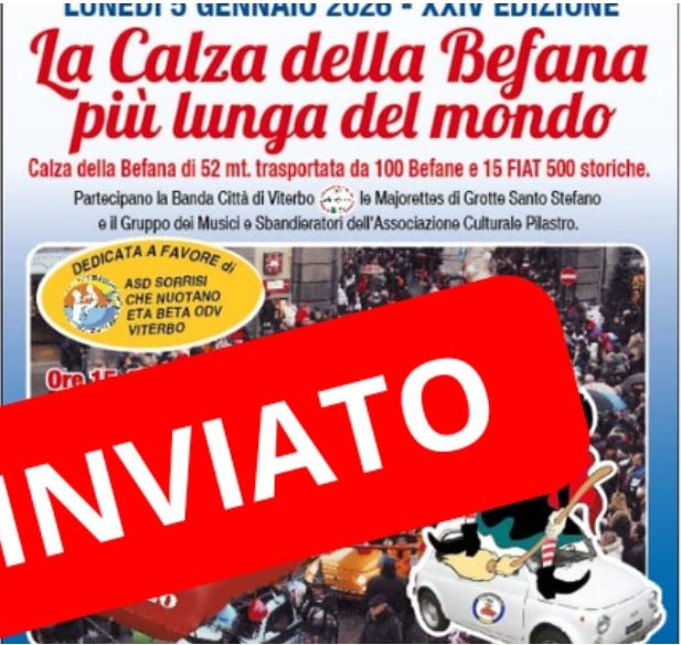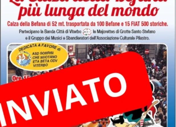 Il maltempo che sta flagellando il centro Italia e anche il viterbese ha costretto a rinviare due delle iniziative più apprezzate dai più piccoli: la Calza della Befana più lunga del mondo e Befana 115.