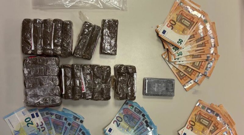 All’interno della busta è stato scoperto un ingente quantitativo di droga: 40 panetti di hashish per un peso complessivo di circa 4 chilogrammi e un involucro termosaldato contenente 310 grammi di cocaina. Un vero e proprio “campionario” di stupefacenti, pronto per essere suddiviso in dosi e immesso sul mercato al dettaglio.